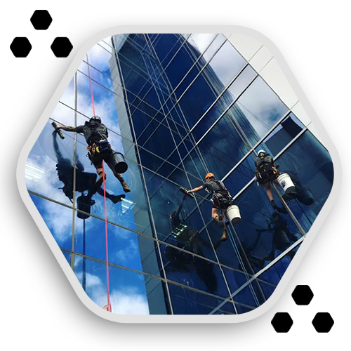 Yüksek katlı yapılarda dış cephe temizliği işlemleri, geleneksel erişim sistemlerine göre çok daha verimli ve güvenli olan iple erişim (endüstriyel dağcılık) yöntemleriyle yapılır. Bu sayede, iskele veya vinç kurmaya gerek kalmadan, minimum maliyetle ve operasyonel süreçleri aksatmadan temizlik işlemleri gerçekleştirilir.