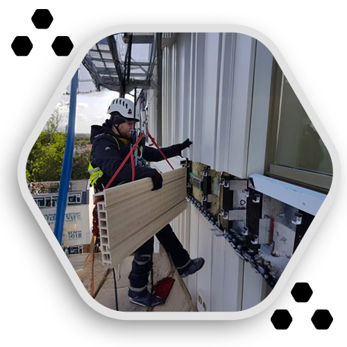 Firmamız, dış cephe cam, kompozit, taş, pimaş ve havalandırma bacası değişimi ve tamiri konusunda uzmanlaşmış kadrosuyla hızlı ve güvenli çözümler sunar. İster estetik açıdan bozulmuş, ister yapısal olarak zarar görmüş alanlar olsun, her türlü dış cephe materyalinin onarımını veya değiştirilmesini sağlayarak binalarınızın hem görünümünü hem de fonksiyonelliğini koruruz.